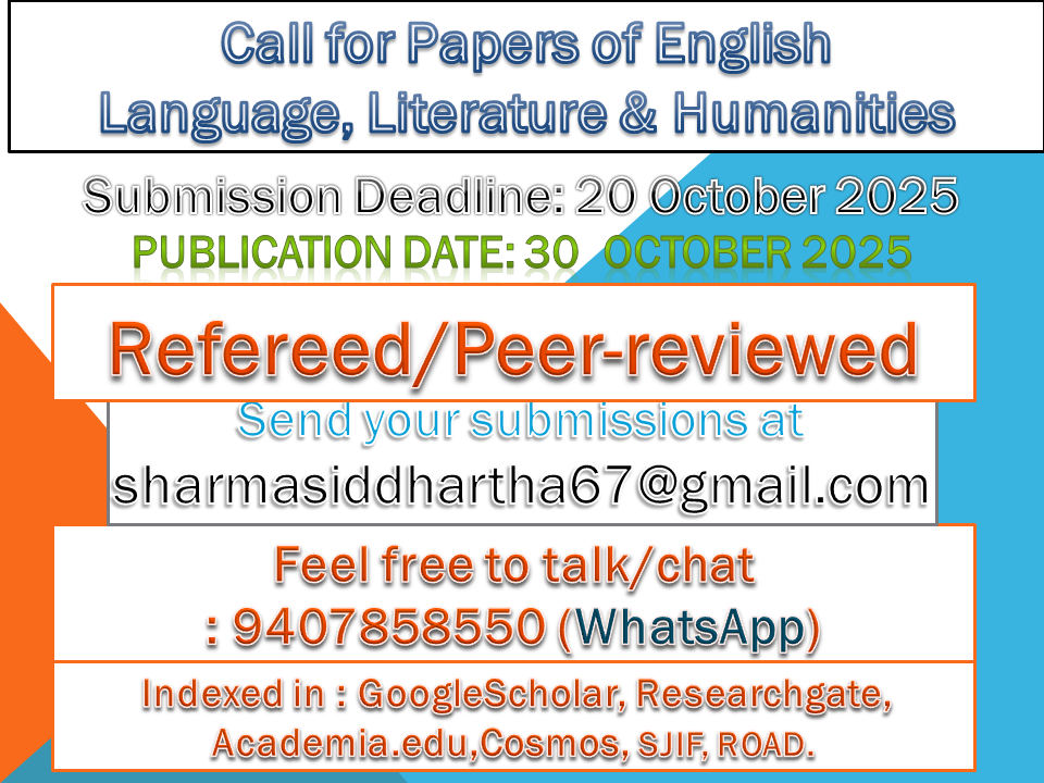 The Literary Herald – an international, refereed / peer-reviewed, impact factor, low fee, fast-review, open-access e-journal of English language and literature, is published Bi-monthly (August, October, December, February, April, June). It publishes original, authentic, scholarly and unpublished research articles, essays, short stories, poetry, book reviews, translations, and interviews received from scholars/ faculty/ researchers/ writers and professors the world over through e-mail attachments on English language and literature. The journal is open to International English Literature, Post-colonial Literature, New Literature, English Language Teaching, Commonwealth Literature, Indian Writing in English, Applied Linguistics and TEFL, and Literatures written in English. The journal seeks to promote interpretative critical analysis and in-depth insights into established and new literatures, and thereby generate an academically serious and healthy debate in the literary circles. It also supports literary contributions in the form of original as well as translated poetry and fiction. Being international, it welcomes research articles/papers from outside India also; being refereed it follows a strict double-blind peer-revie... Read More